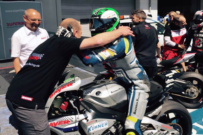 Pünktlich zur Halbzeit der Superbike IDM am vergangenen Wochenende, 12.-14.06.2015 gelang dem 22jährigen Bayer-Bikerbox Piloten der erste Sieg der Saison.