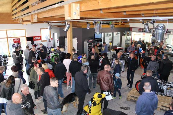 Das Angebot, die Neuheiten von Aprilia, Guzzi, Vespa, Beta usw. auch zur Probe zu fahren, wurde gerne angenommen und durch die geschäftliche Verbindung zu Motorrad Bayer in Senden, konnte erstmals neben dem Aprilia Truck auch der BMW Truck nach Niederrieden geordert werden. Das war natürlich ein weiterer Magnet für die Motorradbegeisterten.