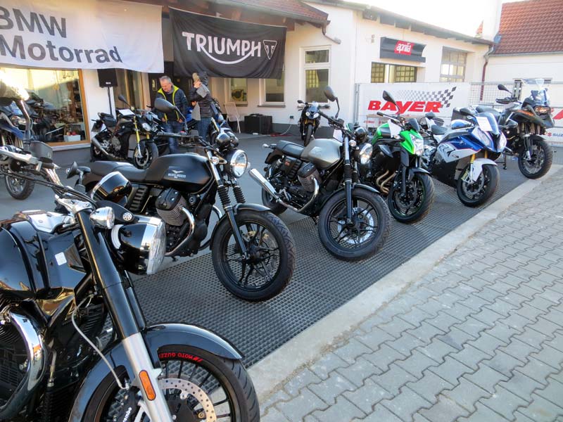 Natürlich hatten die Gastgeber dazu ein Paket mit speziellen Messeangeboten vom passenden Outfit – wie Lederkombis oder Helme – bis zu Reifen und zahlreichem Zubehör geschnürt.